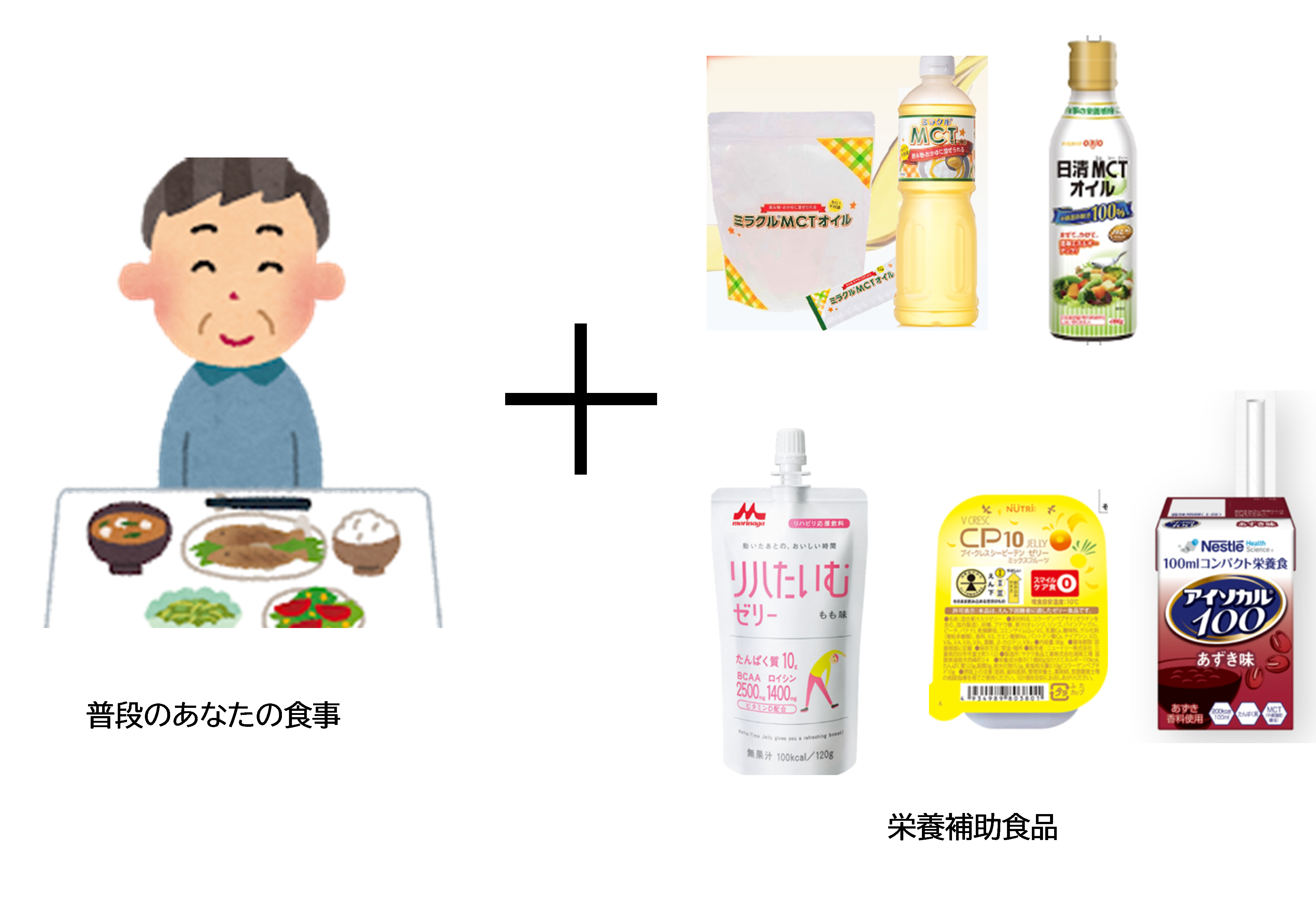 普段のあなたの食事にMCTオイルと栄養補助食品(1日200kcalほど)を加えることです。あなたの食事を整えながら栄養補助食品を取り入れることが大切です。