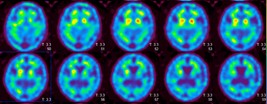 PDと同様の症状を呈しながら、別の病因に関連している疾患をまとめてパーキンソン症候群と呼んでいますが、原因として脳血管性パーキンソニズム ・慢性硬膜下血腫・正常圧水頭症などの変性疾患以外の疾患もありますが、特定疾患に認定されているのは進行性核上麻痺 (PSP) ・大脳皮質基底核変性症(大脳皮質基底核症候群)(CBD/CBS) ・多系統萎縮症 (MSA-P)です。PSPでは垂直性眼球運動障害や前頭葉障害や易転倒性を、CBSでは失行・皮質性感覚障害・失語などの皮質症状を、MSAでは小脳障害や高度の自律神経症状を合併します。これらを鑑別するためには、脳MRIでの検索はもちろん、PDで取り込み低下をきたすことの知られている[123I ]MIBG心筋シンチグラムでの交感神経節後線維の評価、[123I ]β-CIT シンチグラム (通称 ドパミントランスポーターシンチ)での線条体ドパミンの評価、脳血流シンチグラム([123I ]IMP)なども重要なツールとなります。パーキンソニズム をきたす疾患には、レビー小体型認知症や、前出のCBS、アルツハイマー型認知症などの認知障害をきたす疾患群もあり、これらの疾患の診断には脳血流シンチグラムやMMSE、FABなどの認知機能検査も重要です。