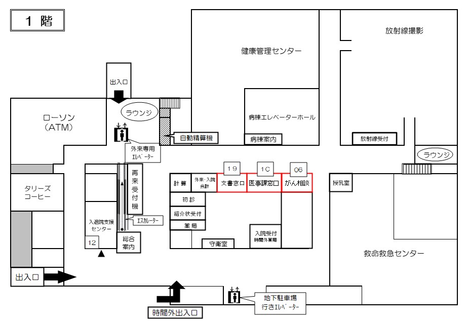 ご来院の際は、2階 患者支援センター受付にお声掛けください。